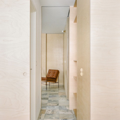This flat renovation sought to increase interior brightness hence, in order to achieve it, walls were demolished as well as invasive architecture elements, while introducing warm and reflective materials such as wood and metals.