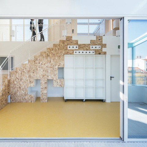 2. Estímulo de los afectos. Se ha equipado el edificio con ciertos elementos que facilitan la interacción y la apropiación de los espacios por los usuarios, así como una relación afectiva con la nueva sede. Tras estudiar algunas metodologías contemporáneas de atención infantil, se observa la relevancia de las prácticas que incentivan la confianza, la responsabilidad y las relaciones afectivas hacia los otros, tales como el cuidado de mascotas o de plantas. Se propone trasladar algunos de estos planteamientos al soporte arquitectónico, mediante una serie de actuaciones espaciales, materiales, cromáticas, de mobiliario y de diseño, tales como: