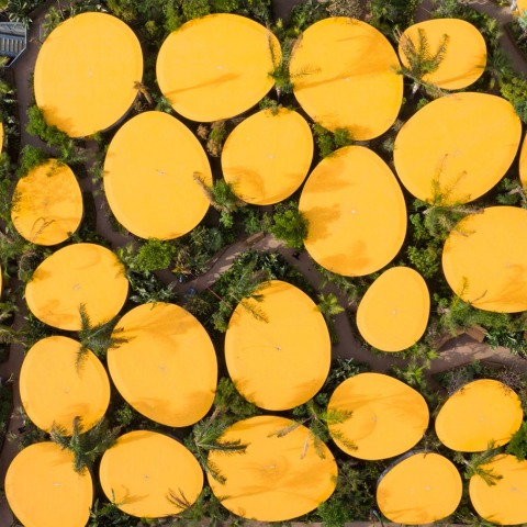 El campus de Second Home en East Hollywood, Los Ángeles, incluye 60 cápsulas de acrílico circulares unidas bajo un solo techo amarillo. Estos recintos están rodeados de un exuberante jardín de más de 6.000 plantas, creado en el espacio de lo que alguna vez fue un estacionamiento.