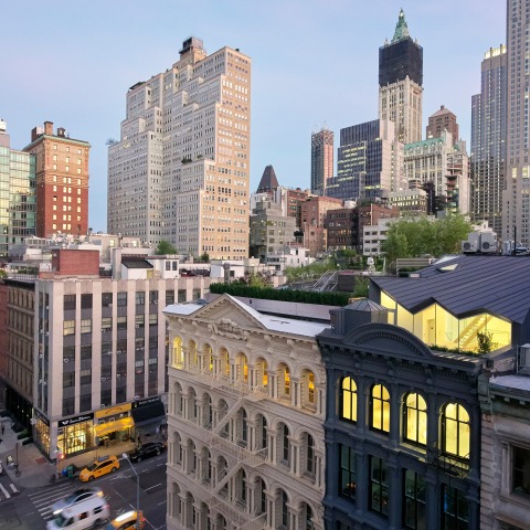Este proyecto residencial consiste en una completa e intuitiva renovación y nueva construcción tras una de las fachadas de hierro fundido más bellas y antiguas de Nueva York. Se requiere un enfoque cuidadoso de la mezcla de arquitectura contemporánea con la preservación histórica. La Comisión de Patrimonio de la Ciudad de Nueva York exigió que cualquier elemento añadido en la azotea fuera invisible. El edificio, sin embargo, está situado en una esquina muy visible con un edificio bajo de dos pisos al otro lado de la calle. Esto significaba que la cubierta del edificio era visible desde casi tres manzanas de distancia.