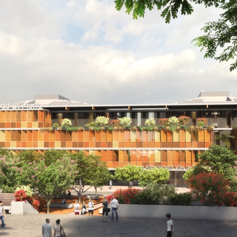 El proyecto del Centro Administrativo de Saint Pierre (Isla Reunión), ganador de un concurso público, alojará el futuro Ayuntamiento de la Ciudad Reunionesa, las oficinas de la Policía Local, un restaurante panorámico y dos plantas de aparcamiento público/privado.