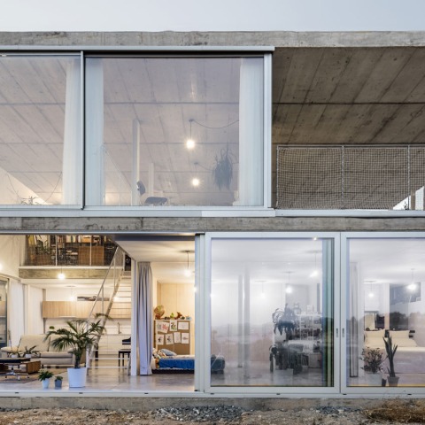 Con un muy bajo presupuesto, consiguen generar un espacio abierto, multifuncional y contemporáneo que abre la casa al paisaje con gestos sencillos y aprovechando todo el potencial de la vistas hacia el horizonte de la vivienda. Una casa sencilla recogida en un solo gesto estructural, una losa plegada que recoge forjados, muros y cubierta.