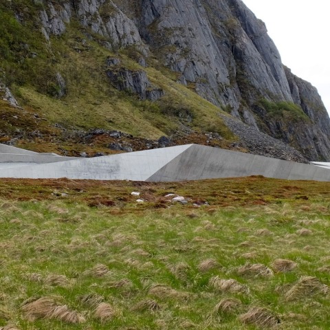El edificio de servicios con inodoros tiene un espejo de vidrio de una vía para que el visitante en privado pueda disfrutar de la vista sobre el mar abierto y la hilera de picos de las montañas en el norte. En el exterior, las ventanas de vidrio reflejan el magnífico paisaje. El edificio consiste en acero pulido y resistente a los ácidos que refleja el entorno. La vista desde una letrina vernácula noruega es, en parte, la inspiración. Al mismo tiempo, nos fascina el reflejo como un fenómeno. El reflejo hace que lo construido se derrita con el entorno, al mismo tiempo que ofrece experiencias nuevas y cambiantes.