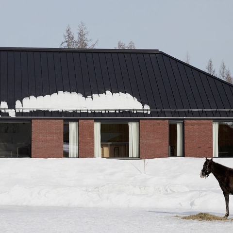 Las aberturas anchas, aunque relativamente bajas, enmarcan cuidadosamente las vistas hacia la arena de los caballos. Las proporciones variables crean una tensión interesante entre el volumen interior y el paisaje.