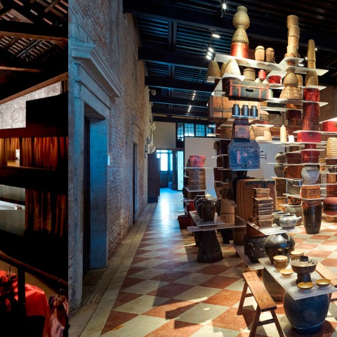 La exposición en el Arsenal también contiene un pequeño conjunto de planos de y dibujos de proyecto del diseño de Zumthor, además de un tranquilo jardín de bambú.