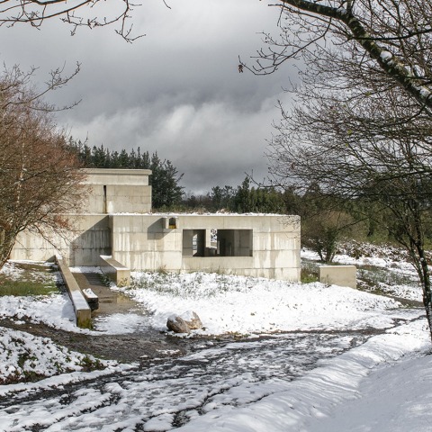 Una construcción sin partida de nacimiento ni autor, enraizada a tierra como la sabia arquitectura popular de la comarca. Los muros que lo construyen, las cubiertas vegetales son ya parte integrante del lugar. Desde el Castro es apenas visto, disipa su presencia en la floresta. Busca el anonimato, ser una presencia discreta de poderosa y rigurosa geometría.