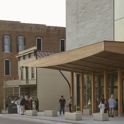 Con su estructura de madera maciza fabricada en Albert Lea, Minnesota y paredes exteriores construidas con ladrillos de Adel, Iowa, The Commons extiende una larga tradición de uso de materiales locales para dar forma a la vida y la cultura de Decorah. La apariencia exterior distintiva pero respetuosa del proyecto crea múltiples oportunidades para que los visitantes de Vesterheim experimenten y aprecien la arquitectura del centro de Decorah y los verdes paisajes de la región.