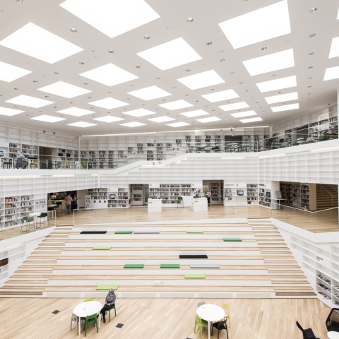 La espiral del conocimiento crea un ambiente de estudio diverso permitiendo a los estudiantes que se muevan en el espacio central o puedan también ir a zonas más tranquilas. La variación de los niveles de sonido y la diferenciación de actividades crea una biblioteca versátil, rica en experiencias. El edificio tiene su propio carácter espacial que une la biblioteca y las funciones multimedia para crear sinergia con el complejo universitario existente.