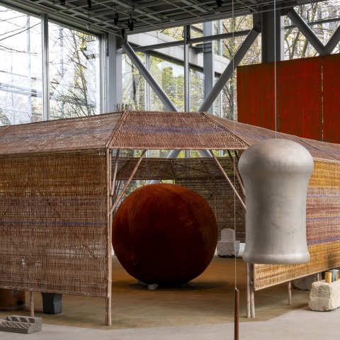Esculturas de piedra y terracota, fachadas de viviendas tradicionales indias, paneles renderizados, líneas de pigmento dibujadas con hilo, estructuras de bambú inspiradas en tazias (monumentos funerarios llevados sobre los hombros en memoria de un santo durante las procesiones musulmanas chiítas), estas estructuras transitorias y efímeras presentan un mundo que es a la vez infinito e íntimo, y nos transporta a lugares cercanos y lejanos.