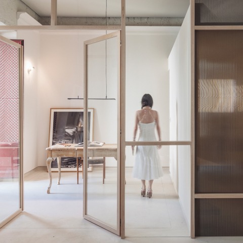 Se separa el espacio del comedor en dos a traveés de una mampara de madera para crear una habitación de estudios. Mediante la utilización de vidrio textil y panelados de madera sin marco perimetral se oculta un baño que no existía y se logra un estilo contemporáneo.