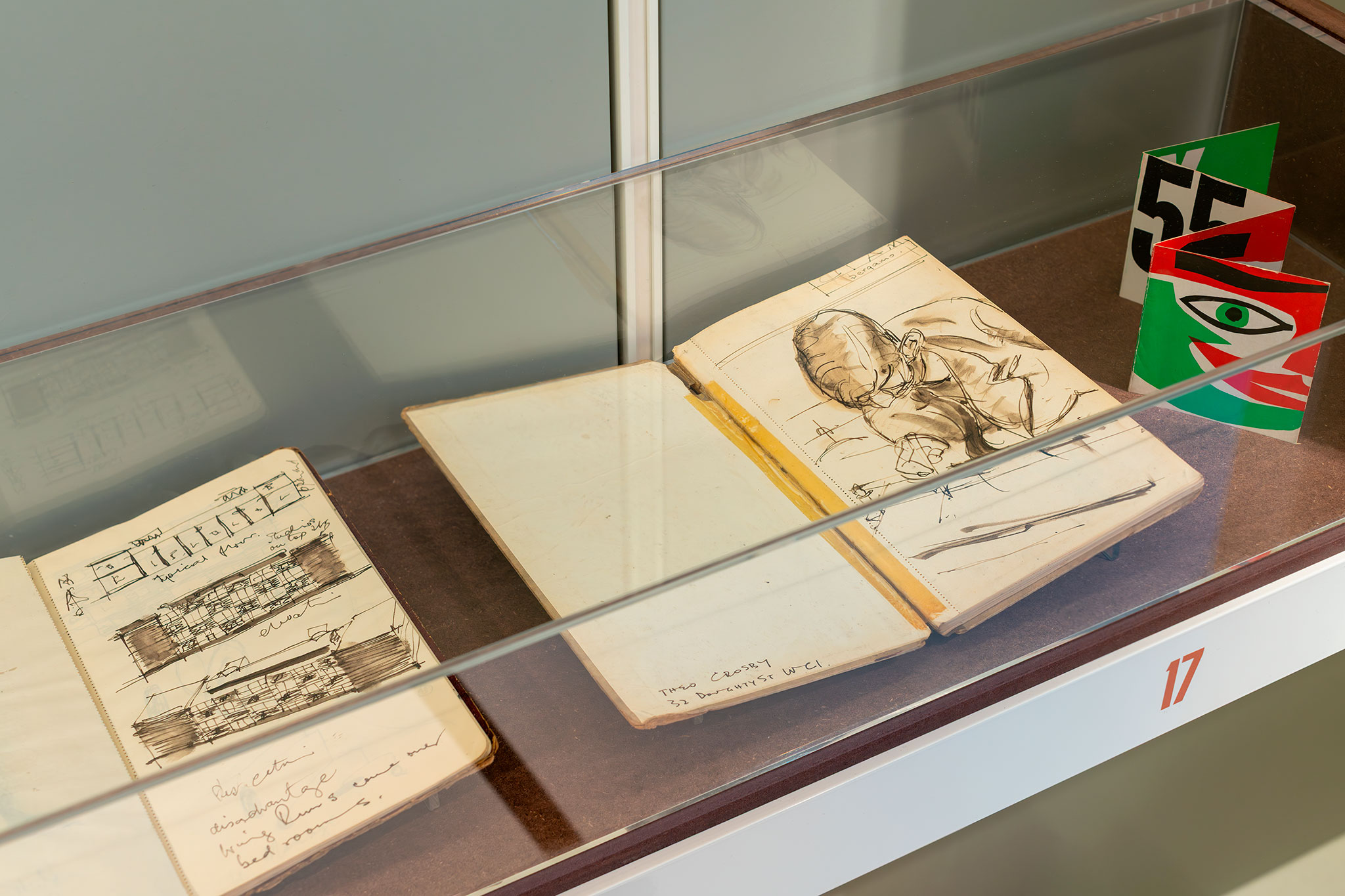 Entre los objetos más destacados de la exposición se incluyen objetos nunca antes vistos de la colección personal de Dido Crosby, cuadernos de bocetos poco comunes del Archivo Theo Crosby de la Universidad de Brighton y la maqueta original del Globe de Shakespeare.
