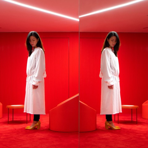Al fondo, se crea una zona de escenario, aprovechando la elevación que sufre el local, donde resaltan los tonos rojos, color corporativo de la marca Impress. Esta zona se trata como un punto especial, ya que en planta las curvas, que articulan el proyecto, se dirigen hacia este punto focal. Este espacio es envuelto por el color rojo, creando una fuerte sensación espacial y haciendo un guiño a Twin Peaks de David Lynch.