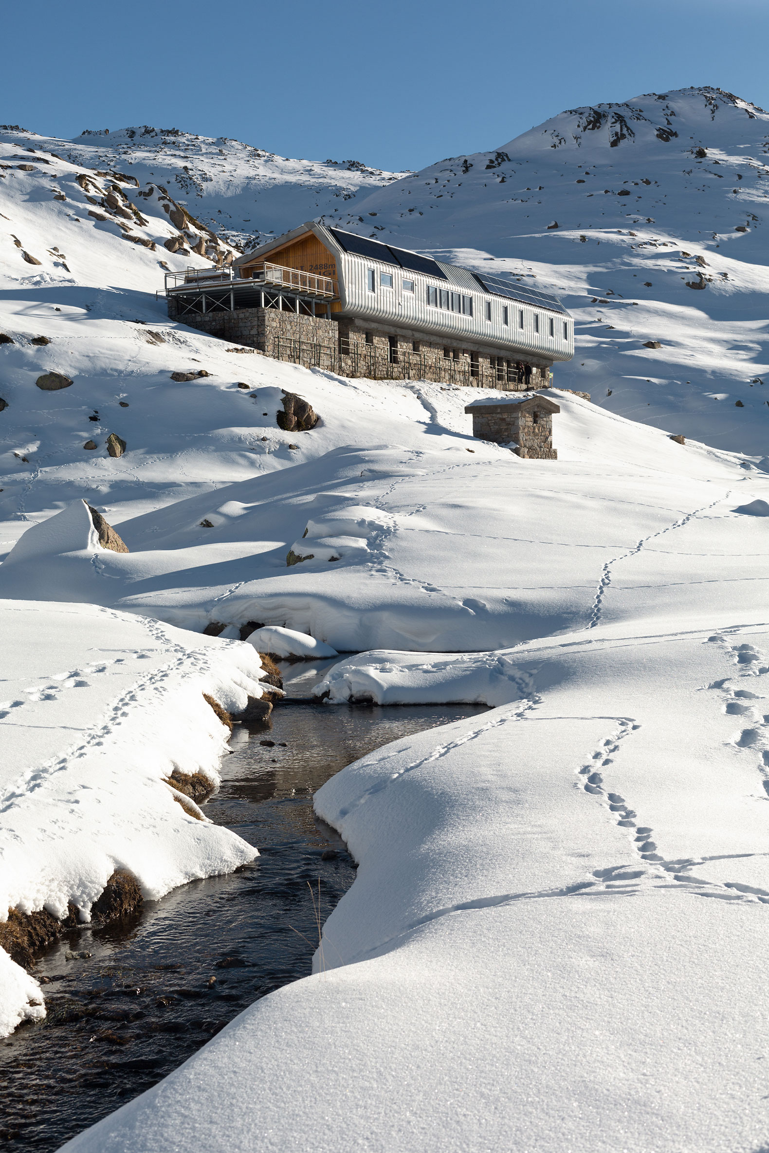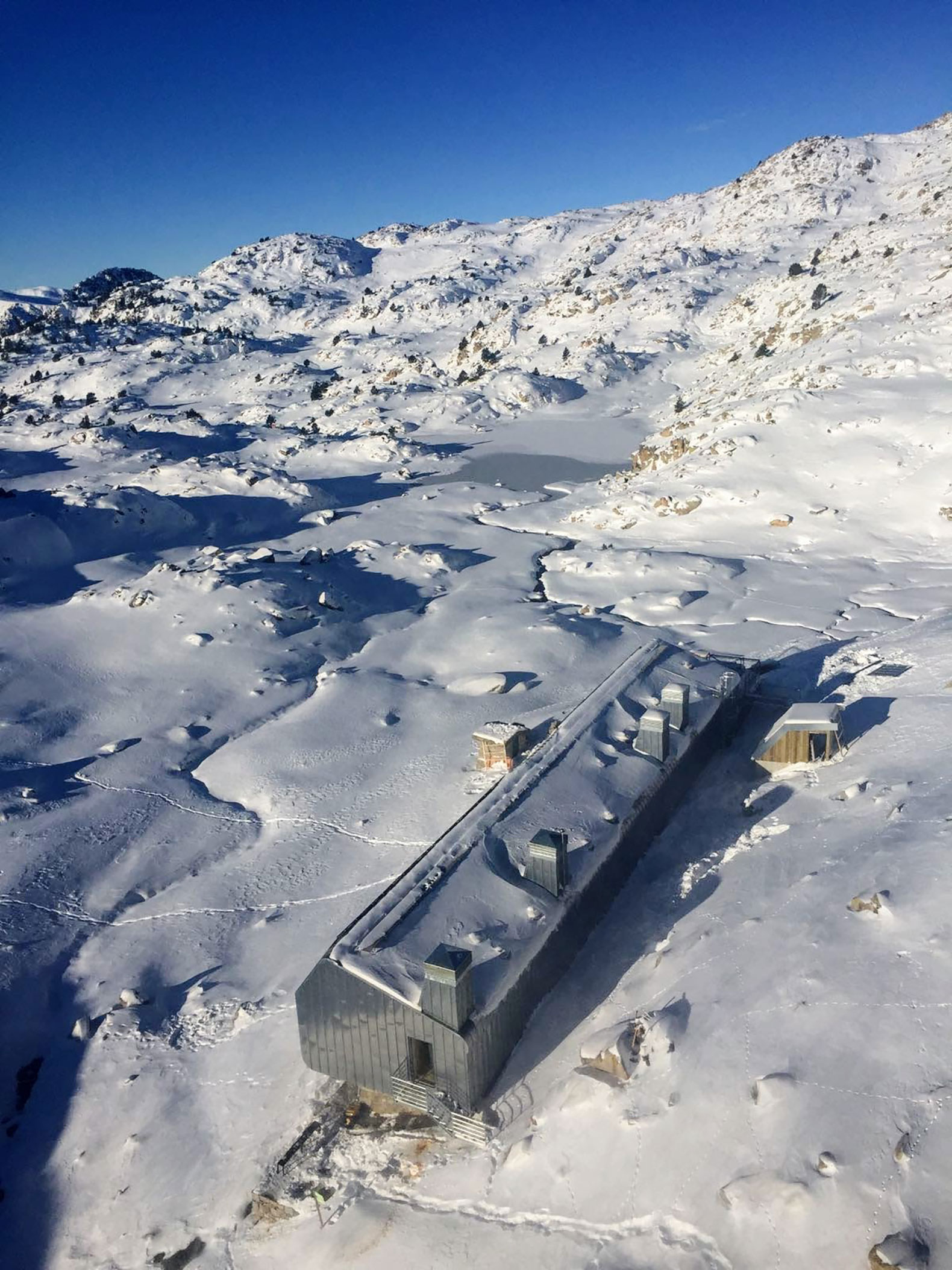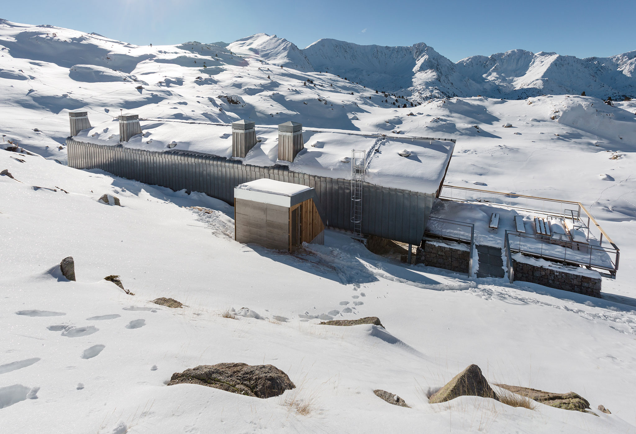 El refugio de montaña, proyectado por Altura arquitectes, está pensado desde parámetros contemporáneos que facilitan la accesibilidad y brindan protección a sus usuarios frente a las inclemencias del tiempo y las temperaturas extremas. El volumen longitudinal del edificio contiene un conjunto de habitaciones, servicios de restauración, bar y guías de rutas.