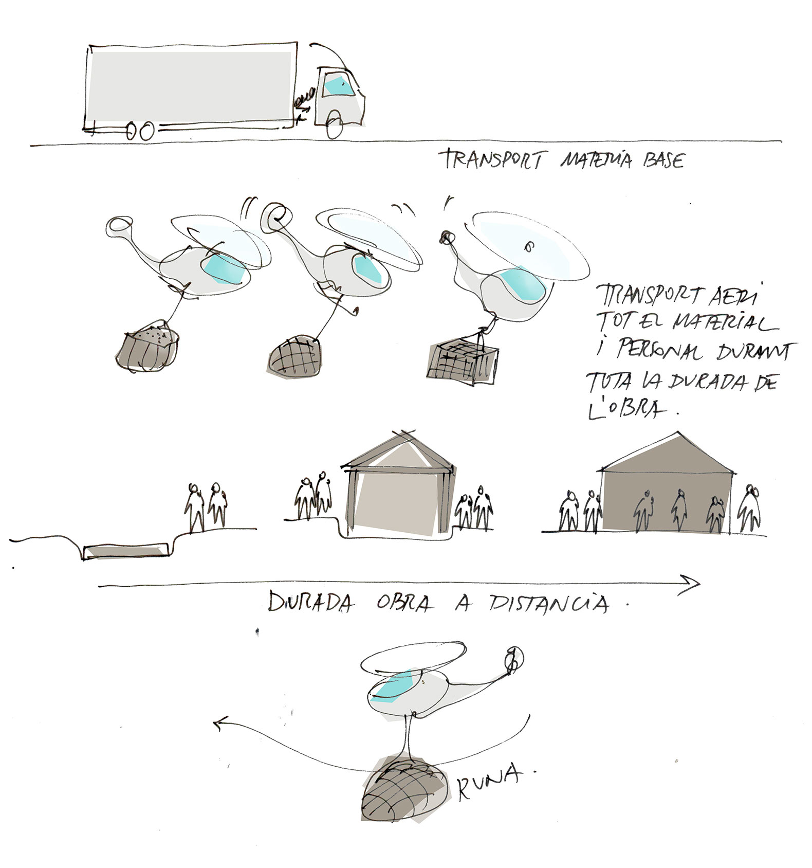Debido a la imposibilidad de acceso rodado - el transporte se realiza exclusivamente en helicóptero, la elección de materiales ligeros y prefabricados fue determinante para reducir costes, emisiones y tiempo de ejecución. El refugio se completó en ocho meses, con un peso total de apenas un tercio del de una obra convencional.