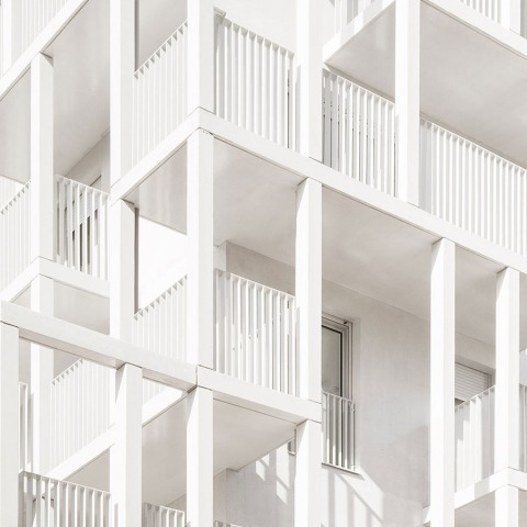 Siguiendo principios estéticos basados en cómo se usan las cosas, una red de balcones, aparentemente aleatorios a través de su juego de alturas simples y dobles, está orquestada en la grilla muy racional de los planos de planta. Esta disposición alterna anima las fachadas, permite la entrada de luz solar máxima en los apartamentos y racionaliza las superficies de los balcones.