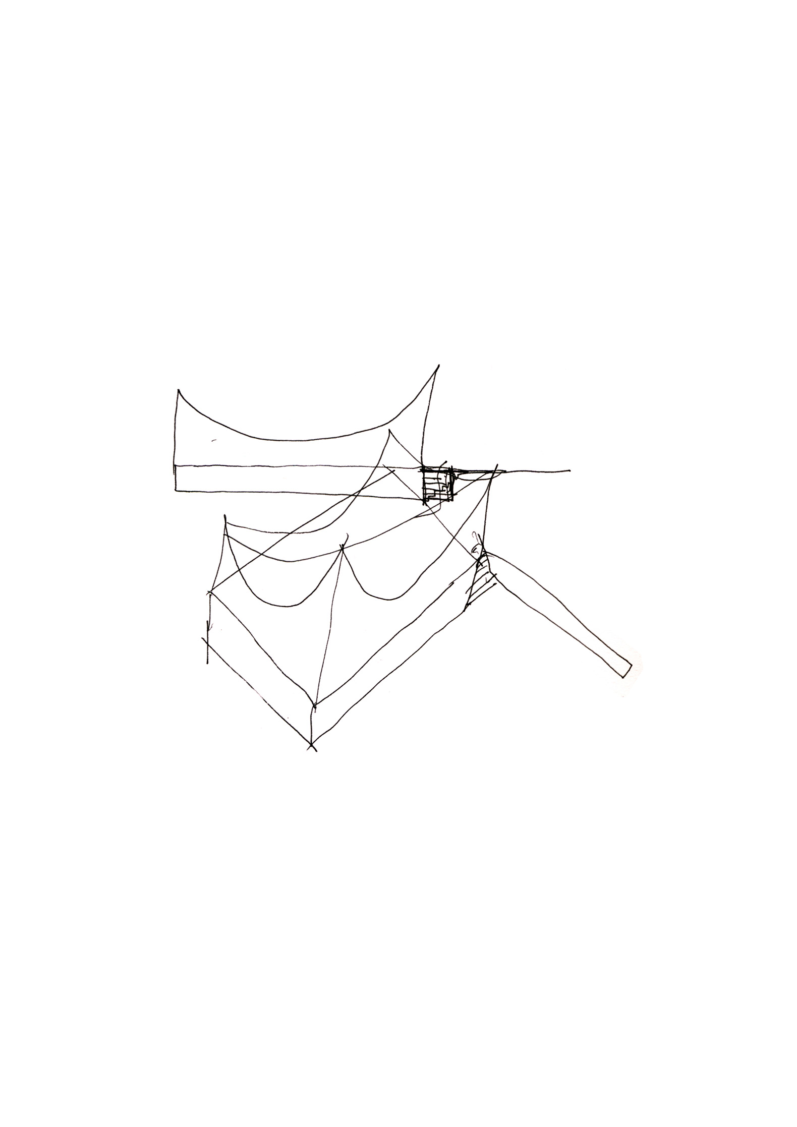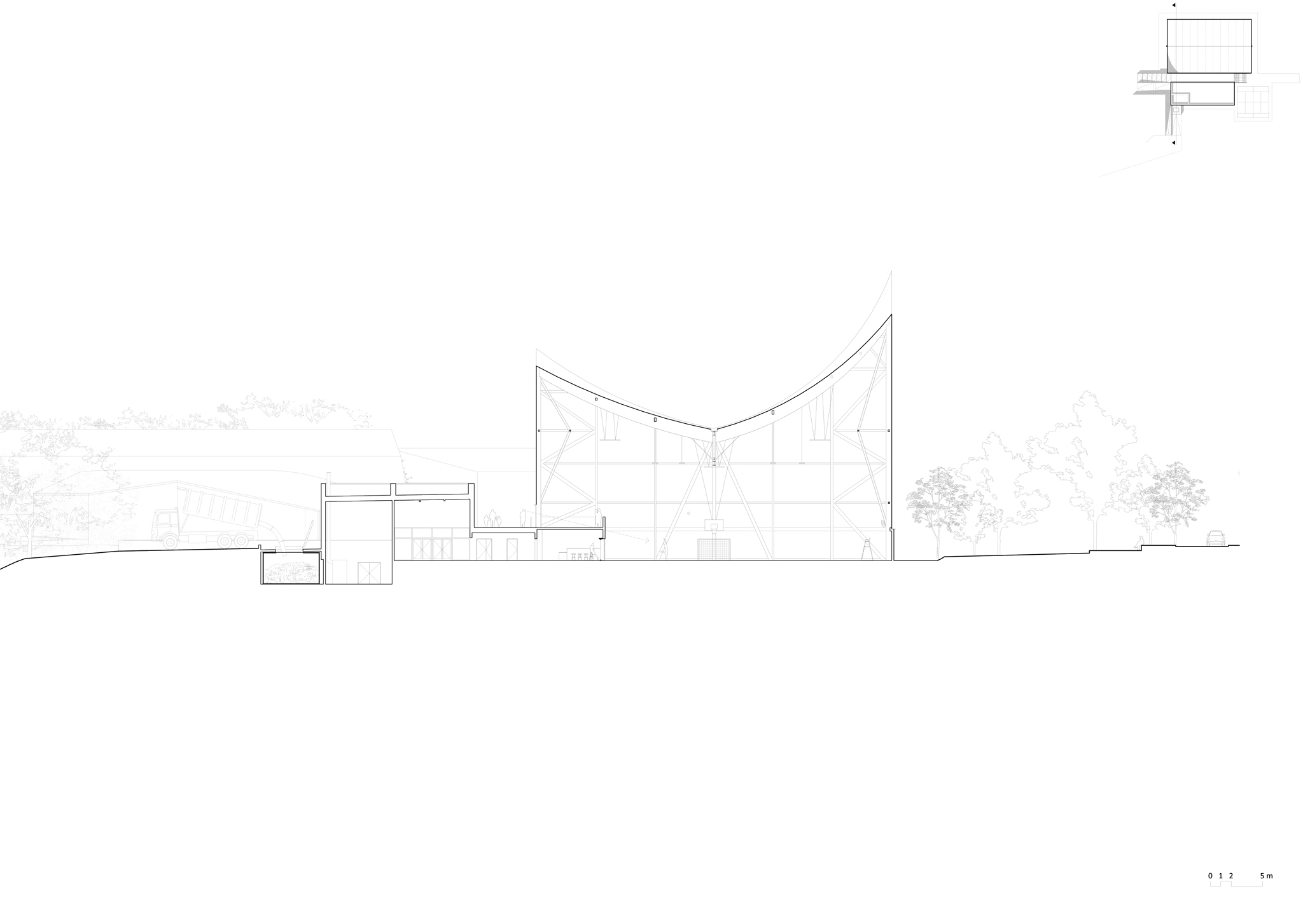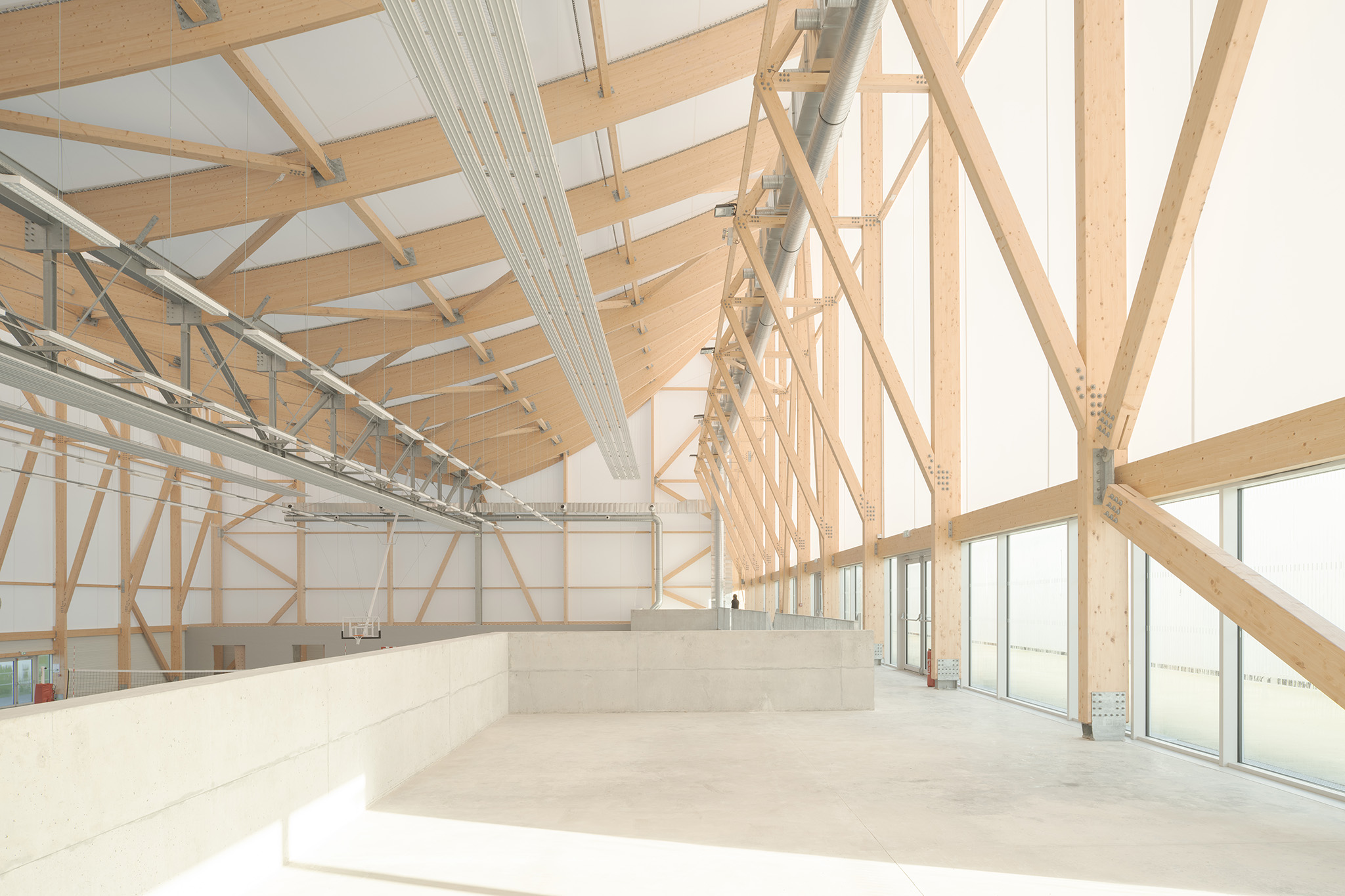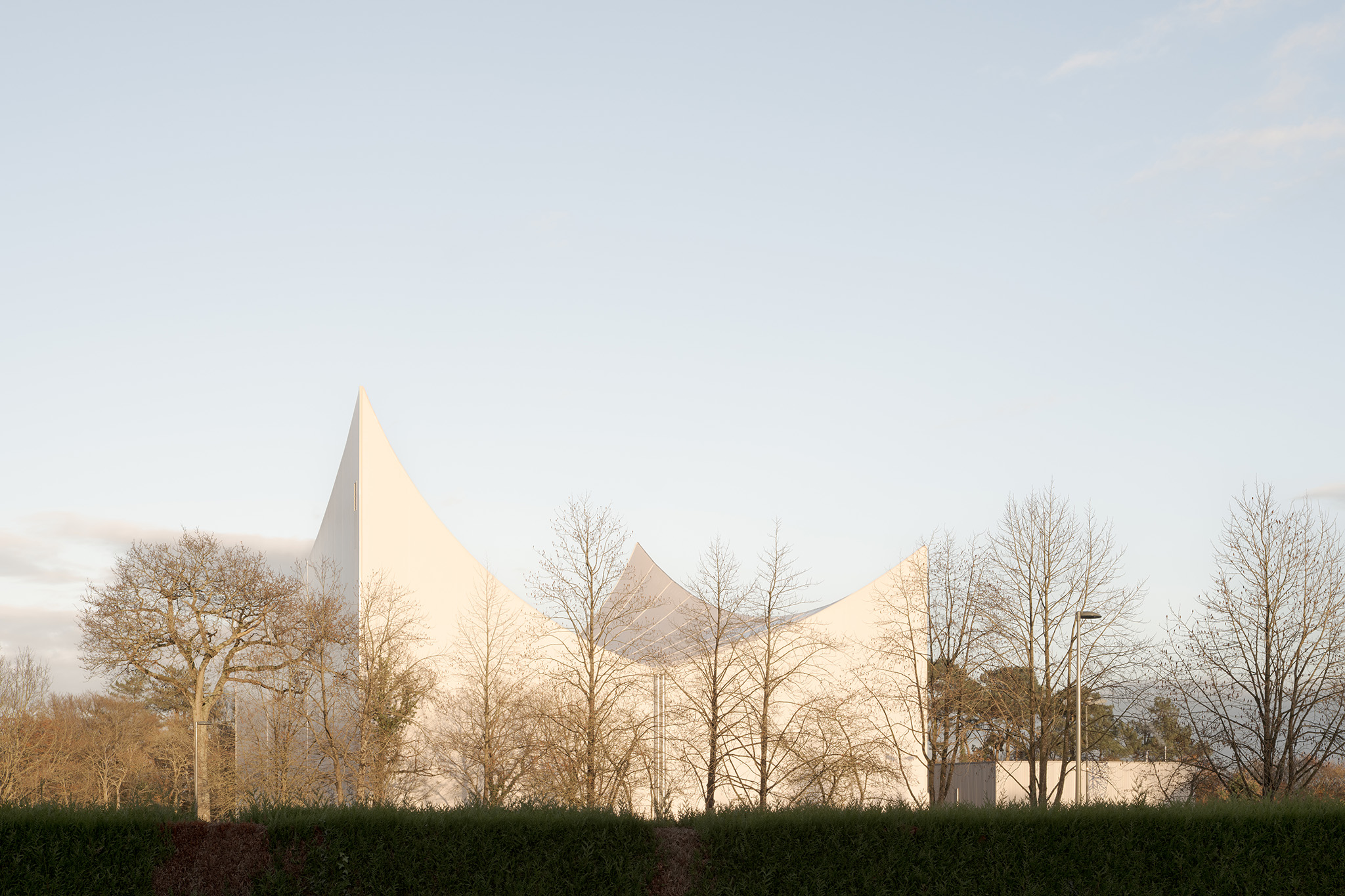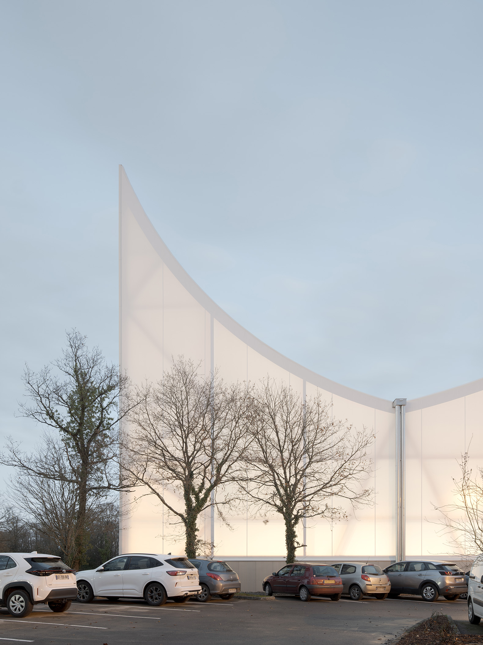 El complejo se concibe como un volumen sobrio y elegante, una arquitectura alba que se remata con una cubierta textil formada por pronunciadas curvas cuádricas. El espacio interior busca ser amplio y continuo. Para ello, se ha empleado una estructura de madera con pilares dispuestos en el perímetro y grandes vigas que cubren un único vano, bajo el cual se sitúa el espacio principal. Además, se plantea como un edificio permeable, capaz de recibir gran cantidad de luz durante el día y de irradiarla por la noche.