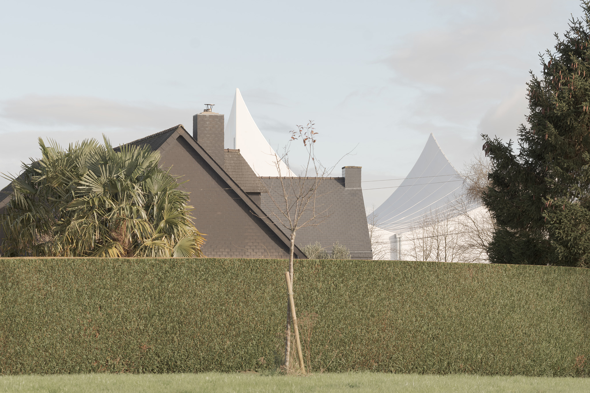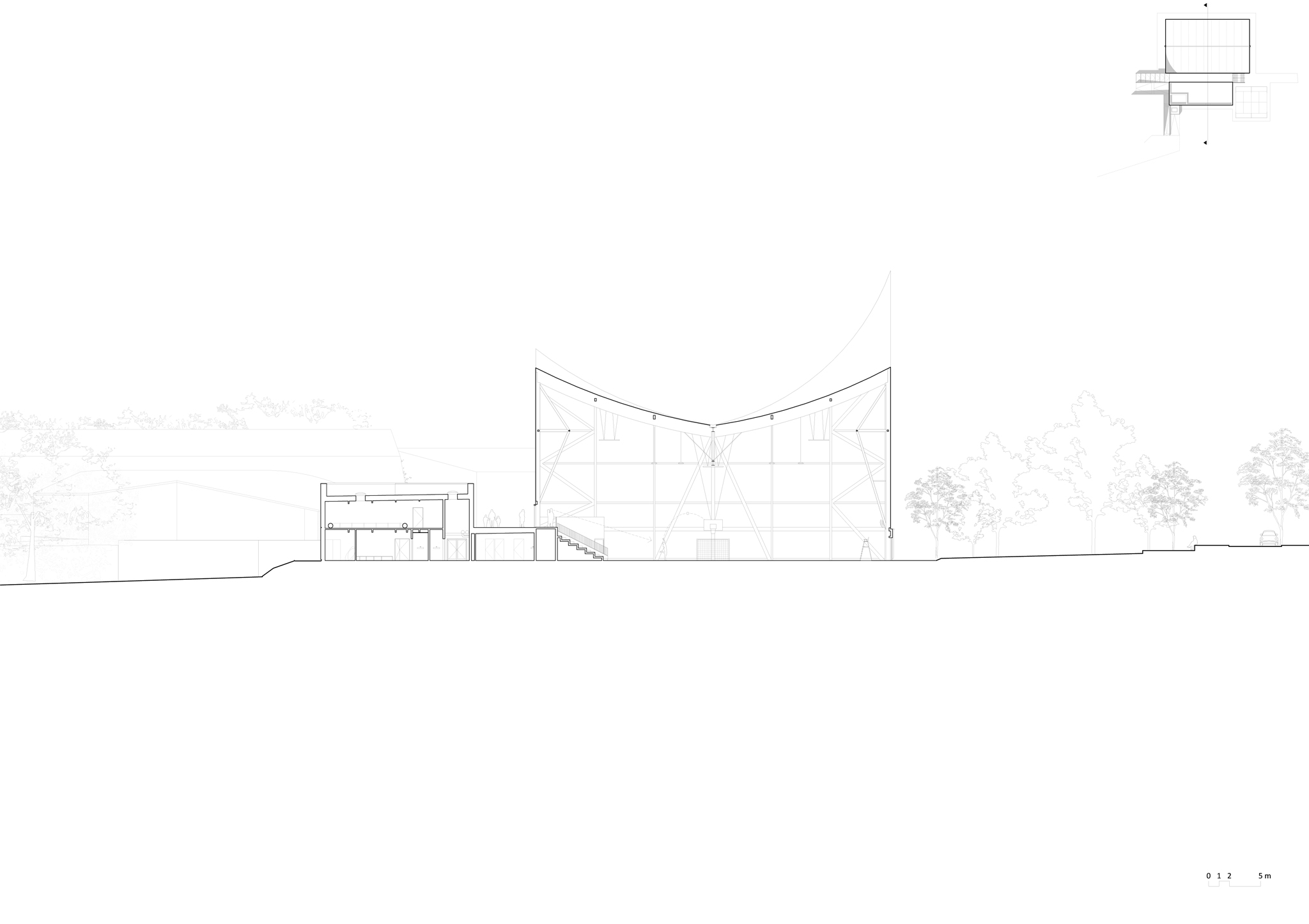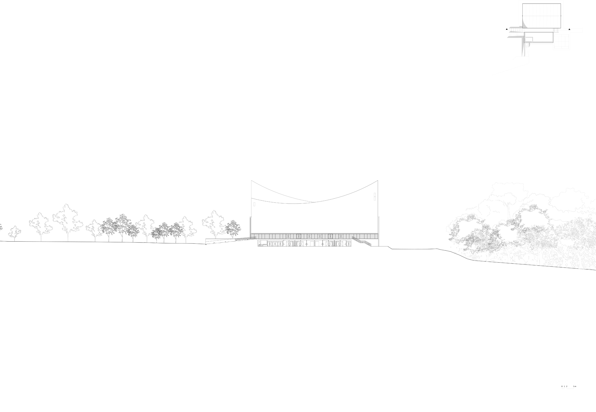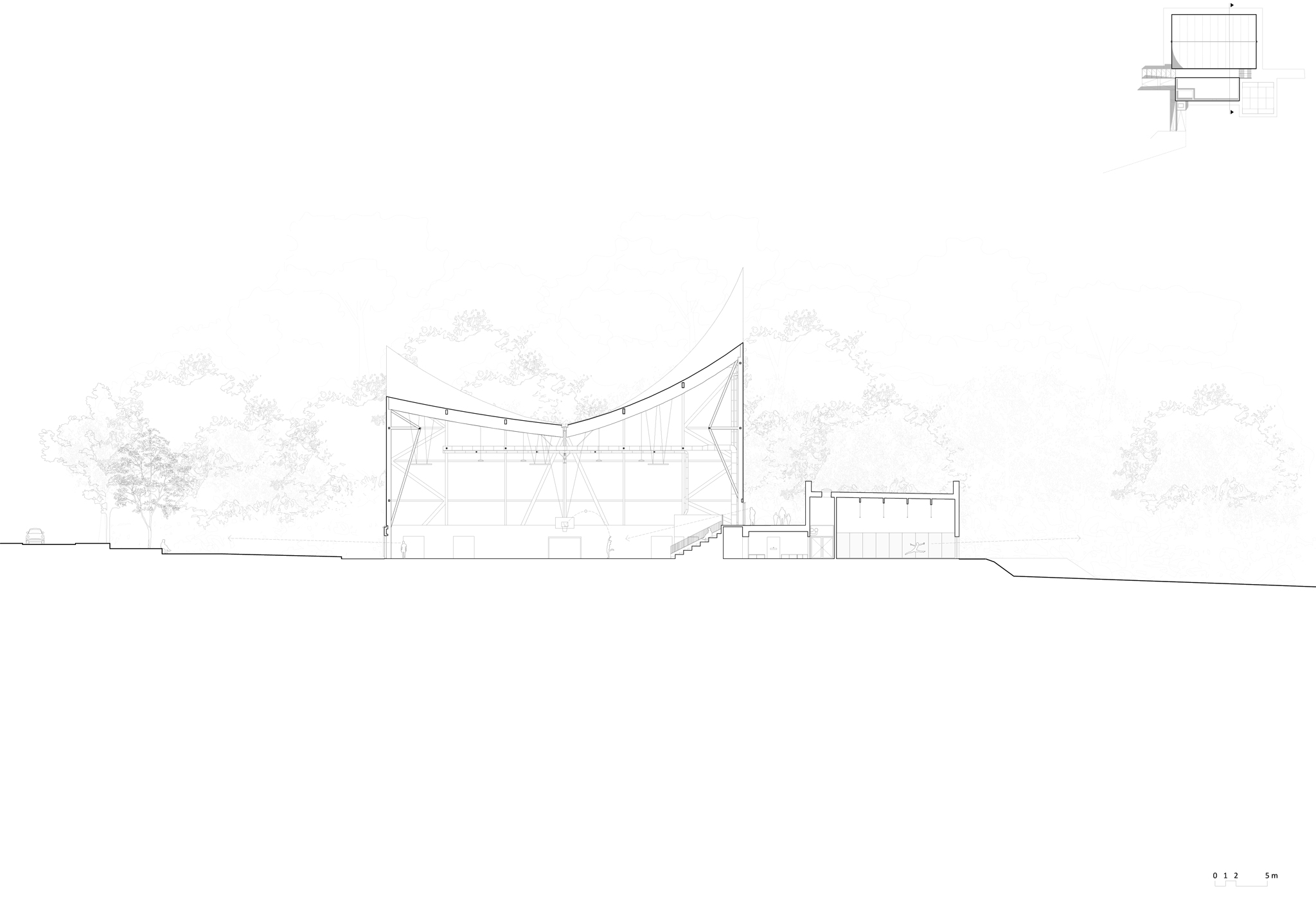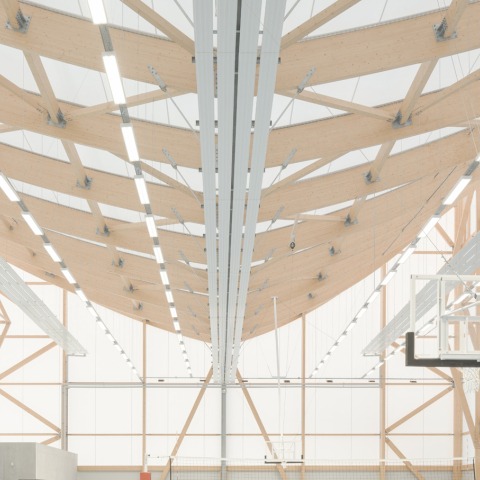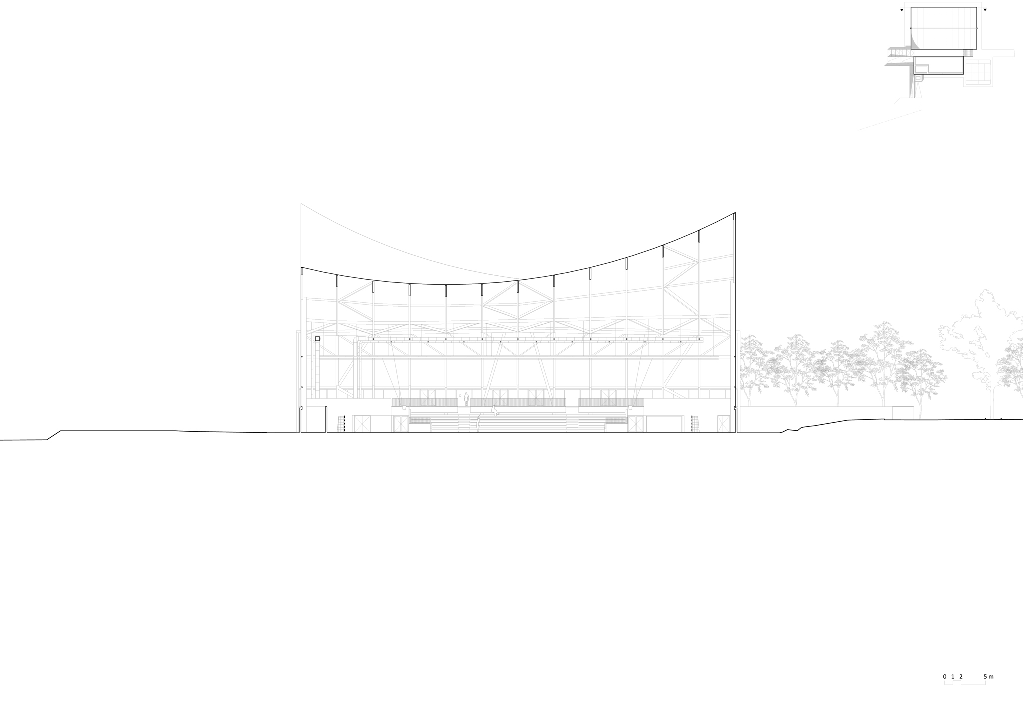 El proyecto propuesto se aleja de la imagen convencional de los pabellones deportivos tradicionales y su típica forma de "caja de zapatos". Se ha realizado un trabajo fino y delicado para crear un volumen sobrio y elegante, donde la cubierta textil blanca se eleva hacia el cielo, como las copas de los árboles circundantes.