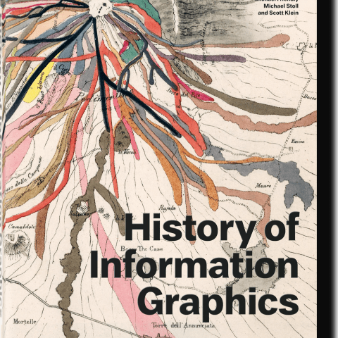 Este compendio de tamaño XL explora la historia de los gráficos de datos desde la Edad Media hasta la era digital. Coordinado por Sandra Rendgen, se presentan unos 400 digujos que recorren campos como la astronomía, cartografía, zoología, tecnología y más. A través de manuscritos medievales y rollos de pergamino, mapas, espléndidos atlas populares y primeros diseños de información basada en ordenadores, se desglosa sistemáticamente el contexto histórico de cada trabajo, incluidos aspectos destacados como el famoso mapa del mundo de Martin Waldseemüller, o los meticulosos estudios de naturaleza de Ernst Haeckel, entre otros.