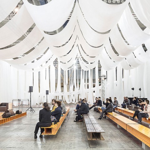 Además de una firme apuesta por el aprovechamiento de recursos, el proyecto de Ferrando transmite lo que él define como una tautología universal de la construcción. “Casi todos los espacios y casi todos los materiales de construcción trabajan de dos maneras: colgados, por lo tanto a tracción o apilados, es decir, a compresión. Dos formas de trabajar, a tracción o a compresión, que han estado históricamente presentes en la arquitectura, desde los edificios clásicos a los contemporáneos. Dos formas de trabajar en las que los elementos más ligeros, como los textiles, se contraponen con los elementos pesados, como el acero. La dialéctica entre lo que es ligero versus lo que es pesado, lo que es transparente versus lo que es opaco… ha estado siempre presente, y es lo que también, quiere transmitir esta intervención”.