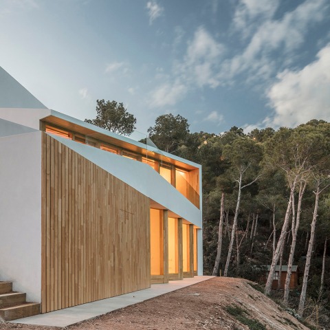 En una parcela con una gran pendiente, con el acceso en la cota más alta, definimos una casa compacta en contacto con la calle y el límite norte, liberando el máximo espacio exterior al sur. Para conseguir una mejor relación con las vistas, el volumen gira para buscar la visión del mar. El resultado es una planta que responde a las dos directrices principales del emplazamiento: la del pendiente del terreno y la que consigue mejores vistas.