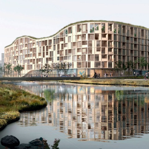 Living Landscape es un edificio innovador, de uso mixto, con una huella de carbono mínima, un impacto positivo en su entorno que alberga un ecosistema local condensado. Este proyecto en forma de "O" será la estructura de madera más grande de Islandia.