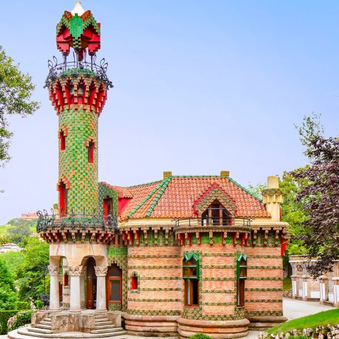 La obra se encuentra en un terreno complicado: valle con gran pendiente en la que altiguamente existía un bosque de castaños, cuyas laderas descienden hacia el mar, expuesto al norte. La respuesta a todas estas premisas que dio Gaudí fue un desarrollo del proyecto en horizontal, orientando las fachadas de las zonas destinadas al día hacia el norte. Gaudí dialogó con dos preexistencias del lugar y las incorporó a su obra: un invernadero y un templete, que transformó en el cuerpo central del edificio y en la base de la torre-minarete, respectivamente.
