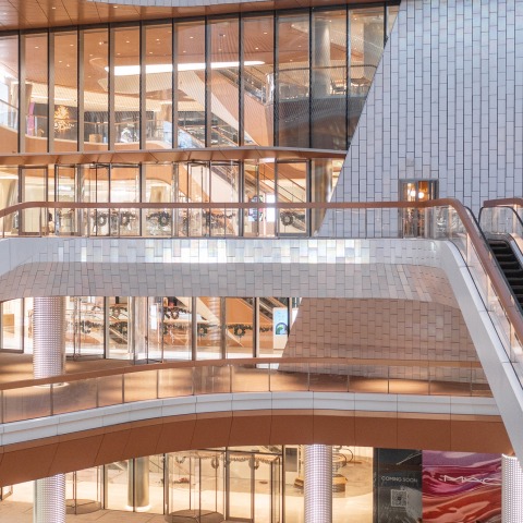 Esto incluyó el diseño del patio interior y sus fachadas, el interior completo del centro comercial y una terraza pública en la azotea. La experiencia del usuario forma el núcleo del diseño de UNStudio. Observar las numerosas formas en que los usuarios pueden interactuar con los diversos espacios y crear experiencias de compra seleccionadas para diferentes usuarios informó el diseño del edificio.