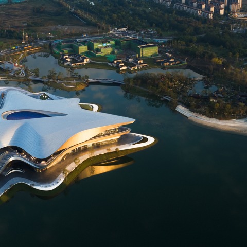 En el centro del lago Jingrong, el nuevo Museo de Ciencia Ficción de Chengdu se encuentra dentro de la Nueva Ciudad de Ciencia e Innovación del distrito Pidu de Chengdu. Al integrarse con los paisajes naturales a lo largo de la orilla del lago, el diseño del museo define nodos de actividad conectados por rutas peatonales que se extienden desde la ciudad a través del parque circundante hasta el corazón del edificio; creando un viaje de descubrimiento que se entrelaza entre plazas interiores y exteriores en múltiples niveles para vincular las galerías de exhibición, las instalaciones educativas, los cafés y otras comodidades del museo.