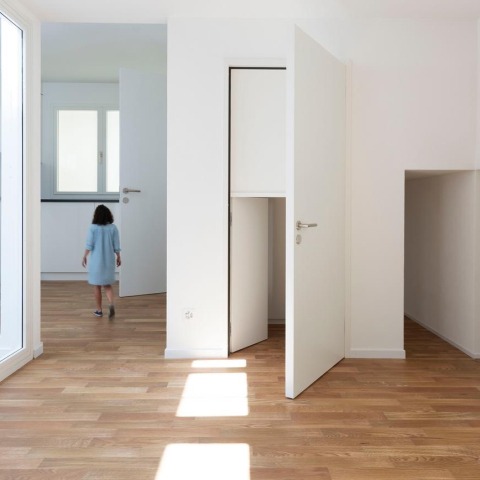 Titulado House Tour, la exposición ve el pabellón suizo transformado en un laberinto de habitaciones sin amueblar, donde interruptores, puertas y mostradores poco llamativos se encogen o amplían dentro del pabellón de la Bienal de Venecia para brindar a los visitantes una experiencia Alicia en el país de las maravillas para prestar atención al diseño de interiores omnipresente de propiedades de alquiler.