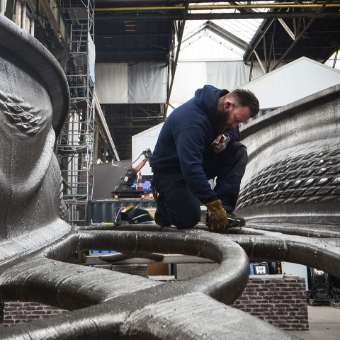 El proyecto ha alcanzado un hito importante al completar la impresión robótica en 3D del puente y presentarsela al público. Se necesitaron cuatro robots, casi 4.500 kilogramos de acero inoxidable, cerca de 1.100 kilómetros de cable y seis meses de impresión para construir la estructura sinuosa y ondulada, con una superficie rugosa, que parece sacada directamente de una película de ciencia ficción.