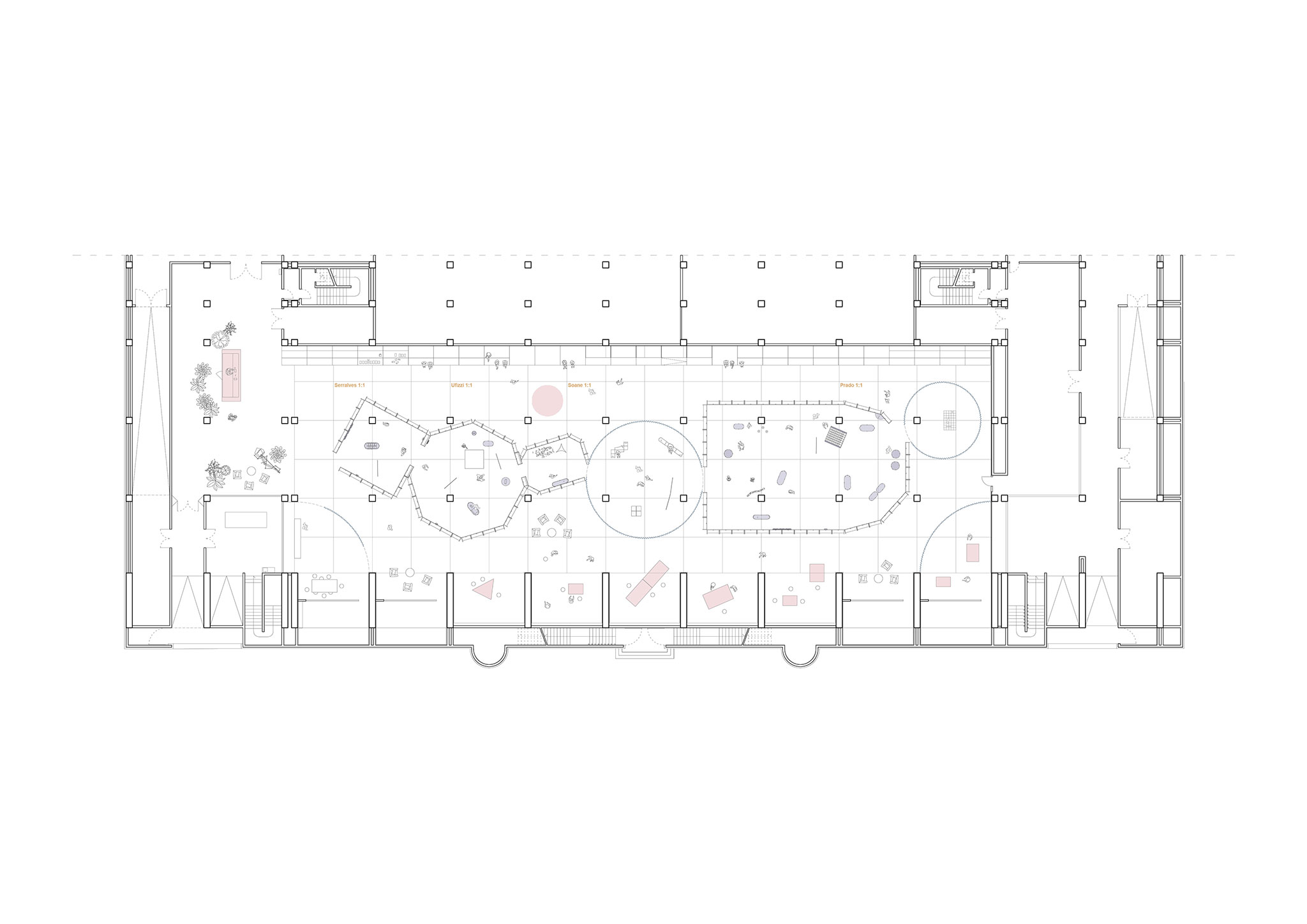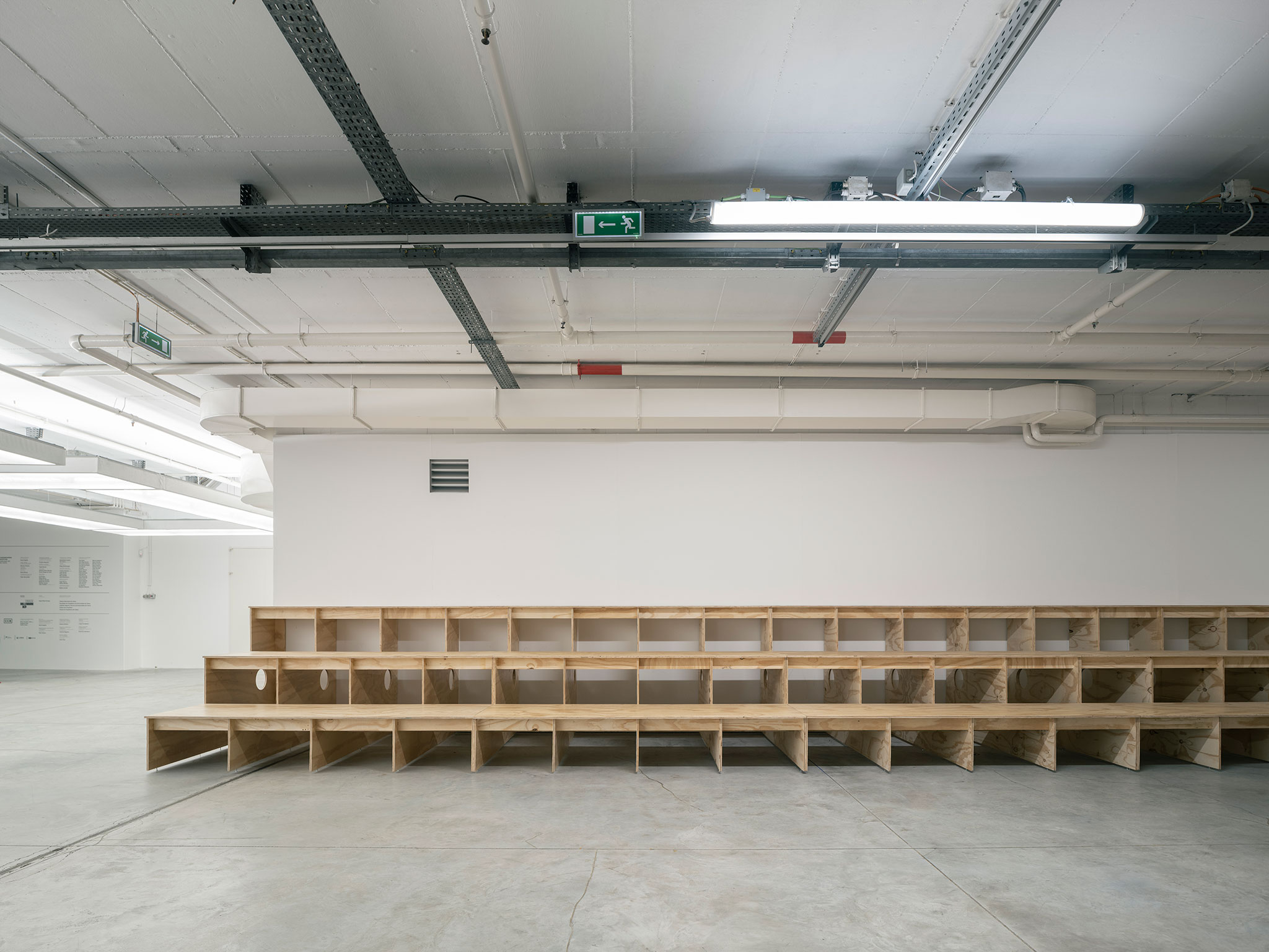 Para su montaje, se despejó de una serie de elementos que habían aparecido a lo largo de la historia del centro de arquitectura. En gran medida, toda la construcción ha utilizado materiales de exposiciones pasadas, recreando momentos culturales y recuperando elementos existentes de la historia del espacio.