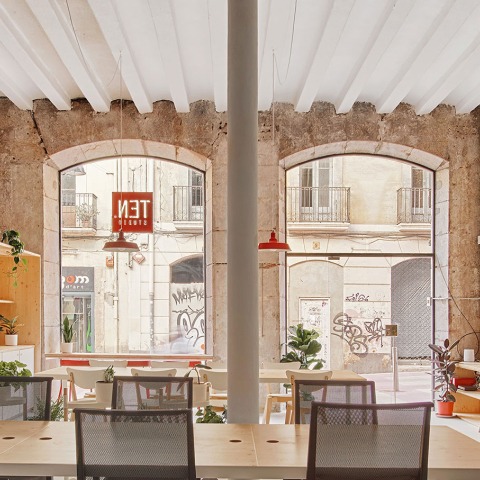 El local de TEN studio era una antigua tienda de arte, revestida de capas de yeso, reduciendo el espacio en todos los sentidos, especialmente la altura, y ocultando el carácter del edificio, construido alrededor de 1930 con muros de ladrillo y columnas de acero fundido.