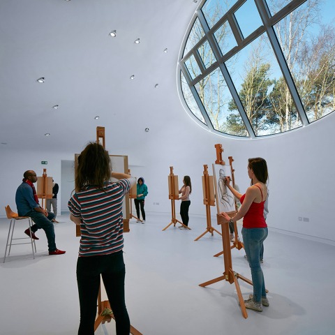"La sala celebra cuatro aspectos de la luz - el tema central es observar y dibujar, por lo que se incluye gran cantidad de luz norte en la zona de estudio tradicional, un claristorio trasero que arroja una luz más suave desde la pared trasera, una discreta e incluso más suave luz que se filtra desde debajo de las mesas en la zona este y, por último, un baño de luz que gradualmente entra a lo largo de la curva de la puerta de cristal de la entrada", dijo el profesor Stuart Bartolomé CBE, Director y Vice-Canciller.
