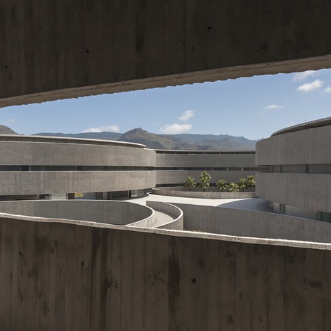 El estudio gpy arquitectos ha sido el encargado de realizar este proyecto para la Universidad de la Laguna como nueva Facultad de Bellas Artes. La ampliación del espacio público, que llega a penetrar en el edificio a través de sus largos corredores, las plásticas curvas generadas con hormigón y la ausencia de referencia a la escala conforman los elementos clave del proyecto.