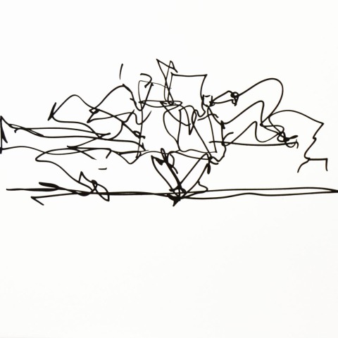 En la exposición se presenta un conjunto de litografías del artista en su mayoría relacionadas con proyectos de arquitectura o diseño. Y como contexto de su trabajo, una sala en la que se presentan obras de los artistas de su entorno en Los Ángeles como John Baldessari, Sophie Calle, Jasper Johns, Ellsworth Kelly, Roy Lichtenstein, Bruce Nauman, Robert Rausenberg, Claes Oldenburg, Ed Ruscha y Richard Serra.