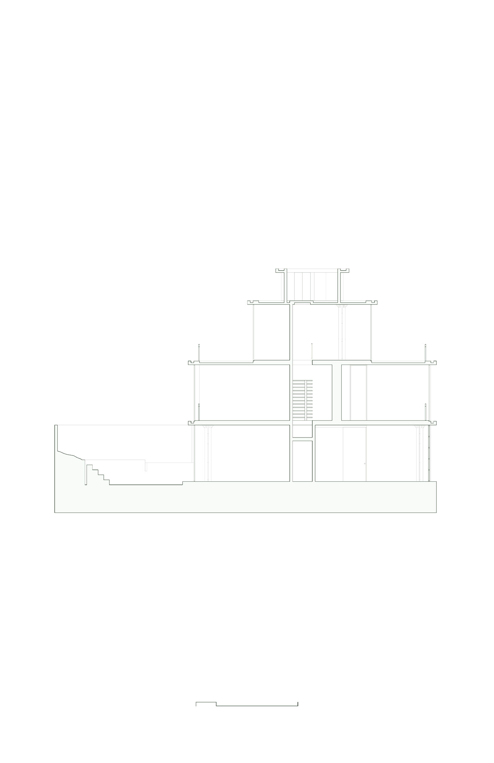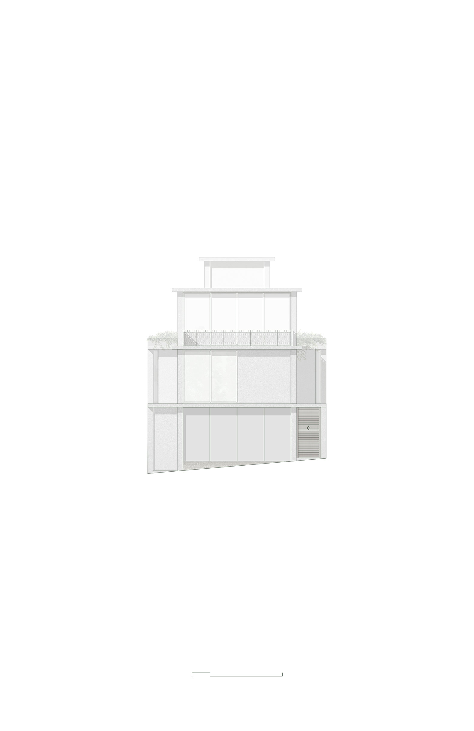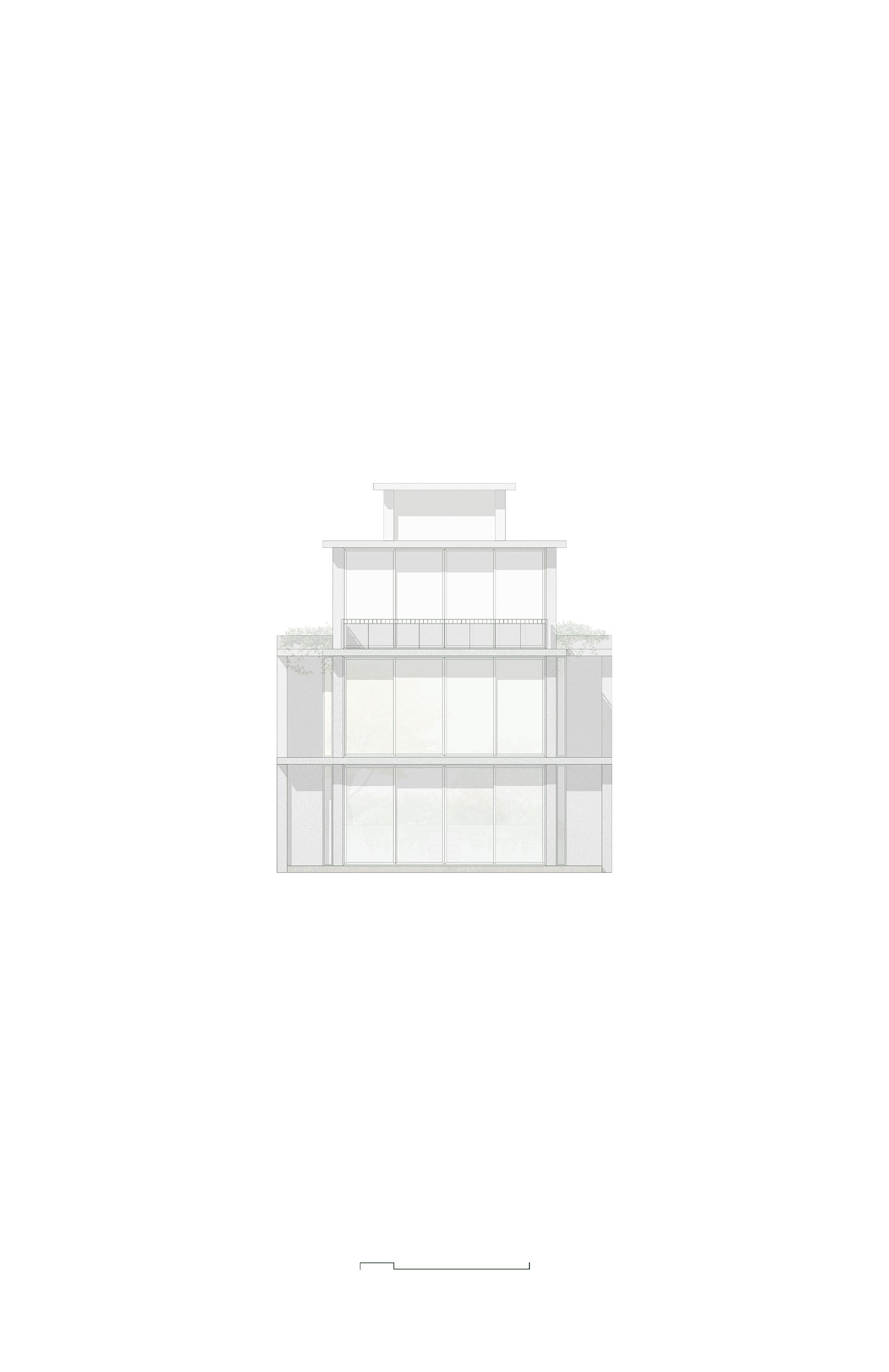 En la cima, un volumen técnico corona la composición con absoluta franqueza. Su carácter, austero y literal, contiene los equipos encargados del funcionamiento del proyecto. Este elemento culmina. Es el punto final de una arquitectura que no teme revelar su verdad última: que incluso lo utilitario puede alcanzar la dignidad de lo esencial.