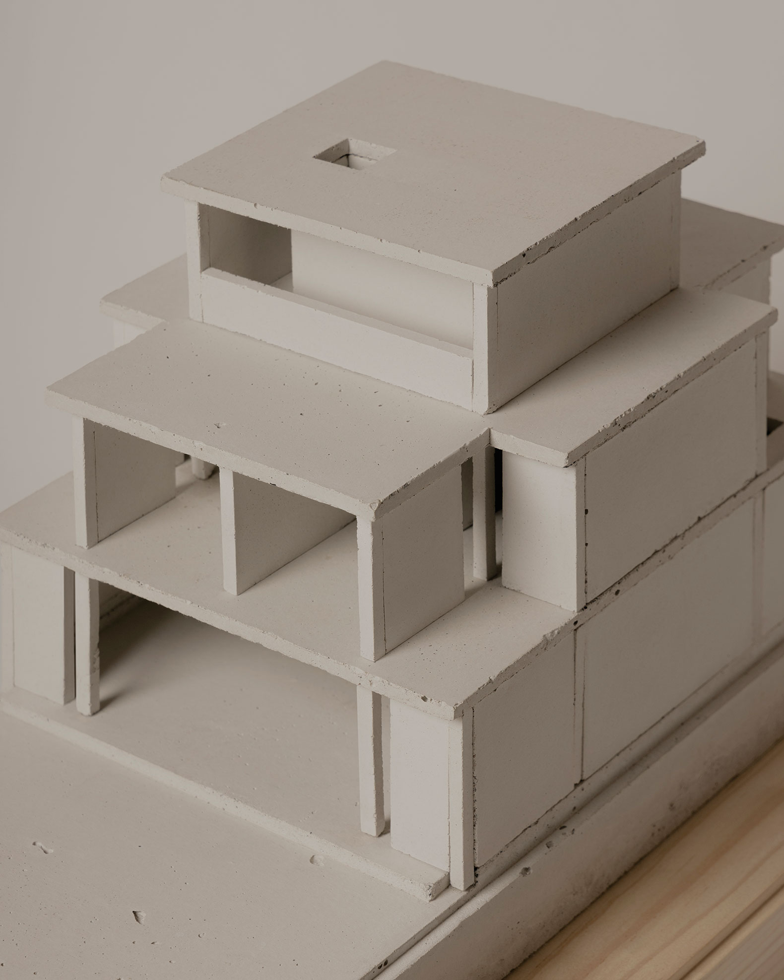 La arquitectura, en su acepción más pura, representa un acto de dominio sobre la gravedad. Casa Tlaloc se posa sobre el terreno con la naturalidad de lo inevitable. Se apoya con firmeza y asciende como si de viejos libros apilados se tratara, donde cada historia sostiene a la siguiente. En esta condición de superposición, rige una verticalidad organizada por la especificidad de los ritos cotidianos y sus diferentes grados de privacidad.