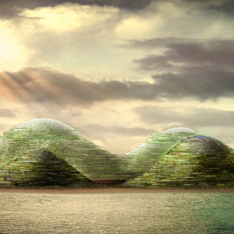 Una isla verde formada por 6 cerros de diferentes tamaños que giran alrededor del centro de la isla. Cada colina se eleva hasta la parte superior de una esfera mega-estructural que soporta las viviendas en las laderas y una zona común en el centro. La isla tiene un diámetro de 3 km de largo, con una circunferencia de 1 kilometro a modo de valle en el centro. Cada colina se dibuja como una estructura de cúpula inspirada en la ingeniería, con principios estructurales estudiados y aplicados en la arquitectura desde la antigüedad, y se desarrolla como una cúpula geodésica tal y como hizo en el siglo pasado Buckminster Fuller.