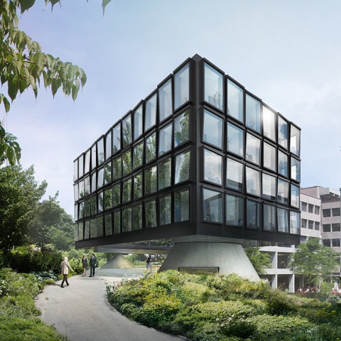 Pierre de Meuron, socio de Herzog & de Meuron , explica: "La cuarta y última ampliación crea una entrada llamativa con una cafetería, salas de reuniones y despachos. En los últimos años, cuatro nuevas ampliaciones, de diferentes en forma, tamaño y estructura en sección transversal se han acoplado al edificio cruciforme con una escalera central abierta. Esto dio lugar a cuatro jardines patio que integran la naturaleza en el trabajo diario de oficina. Las fachadas uniformes de todas las ampliaciones le dan continuidad a la identidad del complejo de edificios".