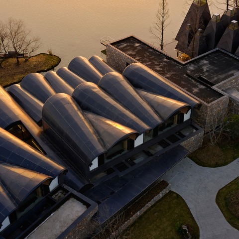 En la aldea de Shanwan en el distrito de Wujiang, Suzhou, se mezclan la tranquilidad de la idílica ciudad, la tranquila extensión del río y la cultura histórica. El Hotel Boatyard se ubica en este lánguido paisaje espacial. Los ondulantes edificios de techos negros son como los botes de techo de cuervo reunidos y atracados en la orilla, a veces melodiosos, a veces serenos y conmovedores, convirtiéndose en el toque final de la pintura a tinta en la orilla.