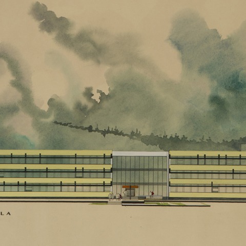 Vasile Mitrea, Drawing of the Veterinary Medicine Pavilion of the Agronomic Institute, «Human Scale», representación de Rumanía en la Exposición Internacional de Arquitectura.