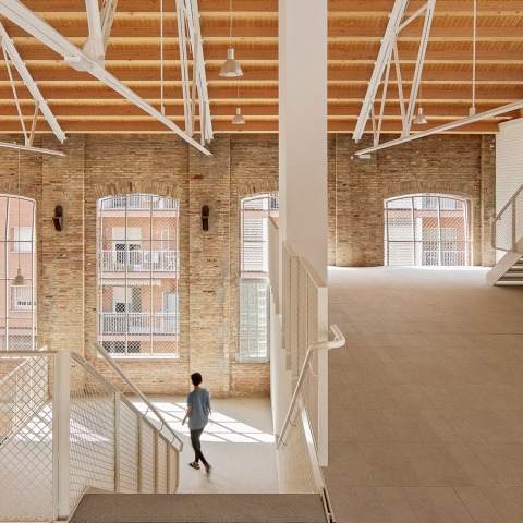 La intervención en la nave activa todos sus elementos originales para el nuevo programa y reutiliza sus cualidades físicas, espaciales e históricas para hacer más eficiente la nueva construcción y reforzar la naturaleza del edificio original.