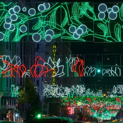 La magia de la Navidad hará que la Gran Vía de Madrid se convierta en un hermoso jardín de invierno. Flores de Pascua, lirios de argel, cactus de invierno, belladonas, rusco, acebo,muérdago o princettias, llenarán de vida y color este singular corredor urbano que nos lleva desde la Plaza de España hacia el Retiro. Todas estas especies vegetales florecen y dan fruto en la estación invernal desafiando al clima y demostrando la idea de que la vida brota en Navidad. En un año en el que nos hemos dado cuenta de que el rigor del clima puede llevar a la transformación de nuestro hábitat, conviene que tomemos conciencia de la hermosura de la naturaleza, los cuidados que merece y el respeto que debemos mostrar hacia ella por el incalculable valor del mundo vegetal, de la riqueza explosiva en todas sus formas orgánicas, la belleza de sus colores ya fin de cuentas, de la vida.