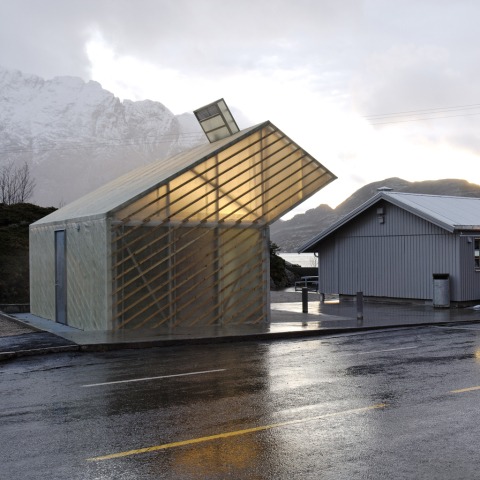 Los trabajos de fibra de vidrio eran como la estructura principal, realizado dentro de una nave de producción cerrada en Hamar, antes de llevar la casa en seis partes en coche a Helgeland, en el norte de Noruega. Los principales subcontratistas de la casa han sido un contratista de vidrio y una empresa de construcción de barcos. Todas las instalaciones técnicas y la iluminación están colocadas, medio visibles, en la zona entre el vidrio y fibra de vidrio.