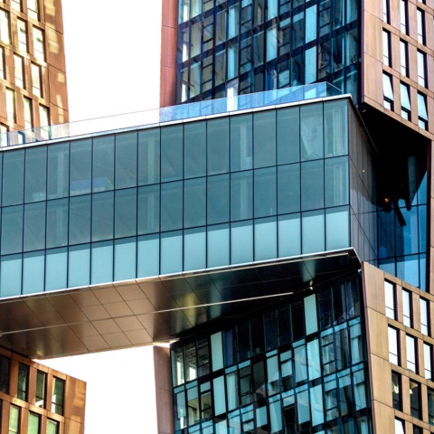 Trabajando con JDS Development Group, SHoP ha diseñado un complejo residencial que se ha convertido en una nueva singular imagen en el horizonte de East River en Manhattan. Evocando las proporciones del cercano edificio del Secretariado de las Naciones Unidas, el diseño escultórico -dos torres revestidas de cobre que se doblan en el centro para encontrarse en un puente elevado- aporta un nuevo dinamismo a un área ignorada de la ciudad.