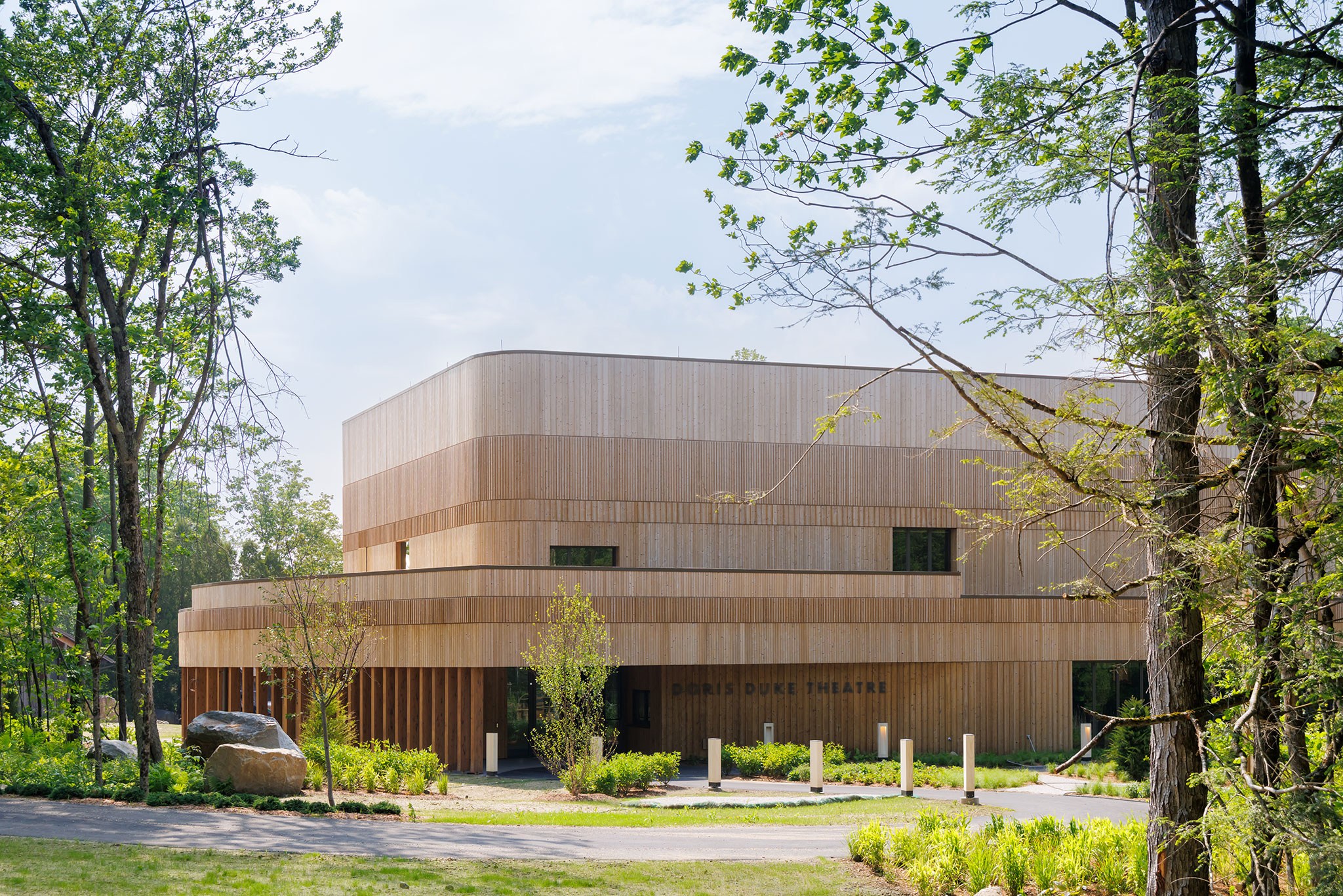 Siguiendo el lenguaje vernáculo de Jacob’s Pillow, la estructura del teatro se construye con madera maciza y se reviste con pino tratado térmicamente, diseñado para envejecer con belleza a lo largo del tiempo. El edificio se transforma con las estaciones; sus materiales naturales cuentan una historia de luz y sombra, de tiempo y cambio: un registro orgánico de la danza de la naturaleza. El agua de lluvia puede recogerse para su reutilización futura, y la amplia veranda proporciona sombra natural, un gesto silencioso de armonía entre sostenibilidad y diseño. A través de su forma, función y conexión con la tierra, el nuevo Teatro Doris Duke encarna la poesía del lugar: un testimonio duradero del poder de la danza, la naturaleza y la creatividad humana entrelazadas.