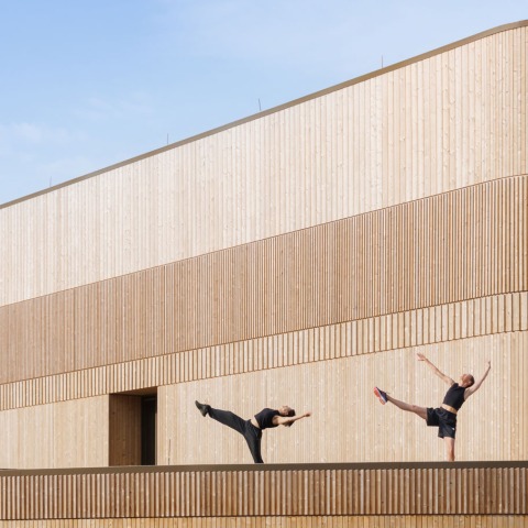 Mecanoo plantea el teatro como una arquitectura inmersa en el paisaje y alineada con una idea expandida de la danza, y a través de esta estrategia de integración, el edificio se inserta en el terreno articulando sus accesos y recorridos con los caminos que conectan los estudios y el Artist Quad del campus. El proyecto destaca por su capacidad para crear un entorno híbrido entre lo natural y lo construido, mediante elementos como una cubierta vegetal, una veranda abierta o sistemas de fachadas retráctiles que permiten transformar el espacio escénico según el tipo de representación. Esta flexibilidad programática permite pasar de configuraciones íntimas a grandes presentaciones.