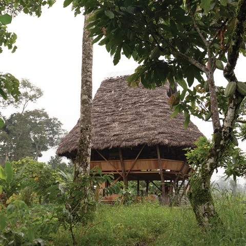 El proyecto emplea las prácticas ancestrales de la zona construyendo a estructura del edificio con Chonta, una especie de palma de la Amazonía, conocida por su increíble durabilidad y resistencia.