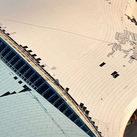 La cubierta de paneles de aluminio blanco plateado que encontramos sobre la terminal, se sostiene sobre 14 columnas con forma de paraguas, reflejando la ligereza del conjunto mediante su forma fluida. El voladizo de 30 metros de la cubierta crea un vestíbulo de ambiente acogedor bañado por la luz natural que entra desde el tragaluz central.