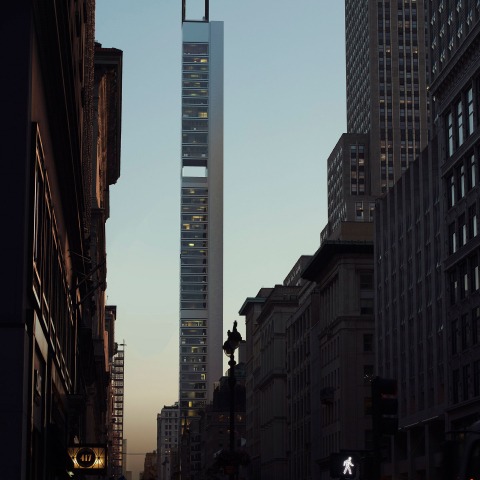 Cada apartamento siempre mantiene el potencial del vacío. Es un refugio, la experiencia de una habitación sobre la ciudad. Es un vacío con techos altos, limitado por dos paredes y dos ventanas panorámicas. La vista y su perspectiva revelan todo Manhattan: una vista de 180 grados en dirección norte y sur.